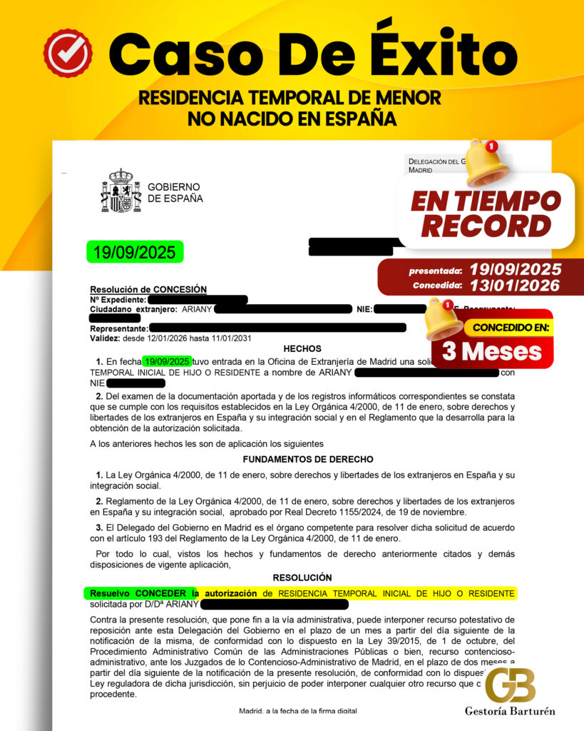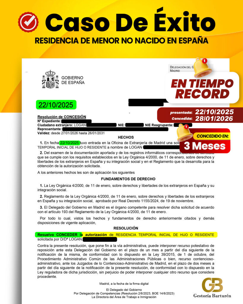 RESIDENCIA TEMPORAL DE MENOR NO NACIDO EN ESPAÑA