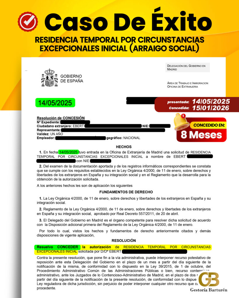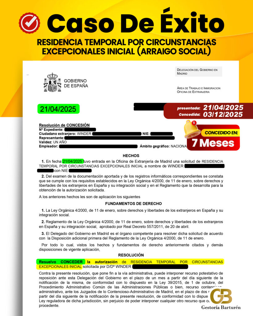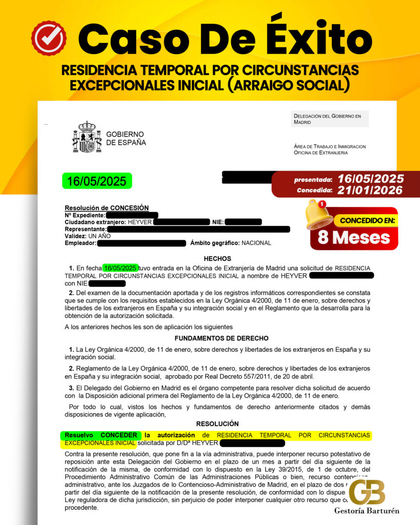 RESIDENCIA TEMPORAL POR CIRCUNSTANCIAS EXCEPCIONALES INICIAL (ARRAIGO SOCIAL)