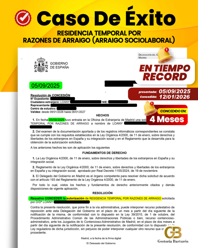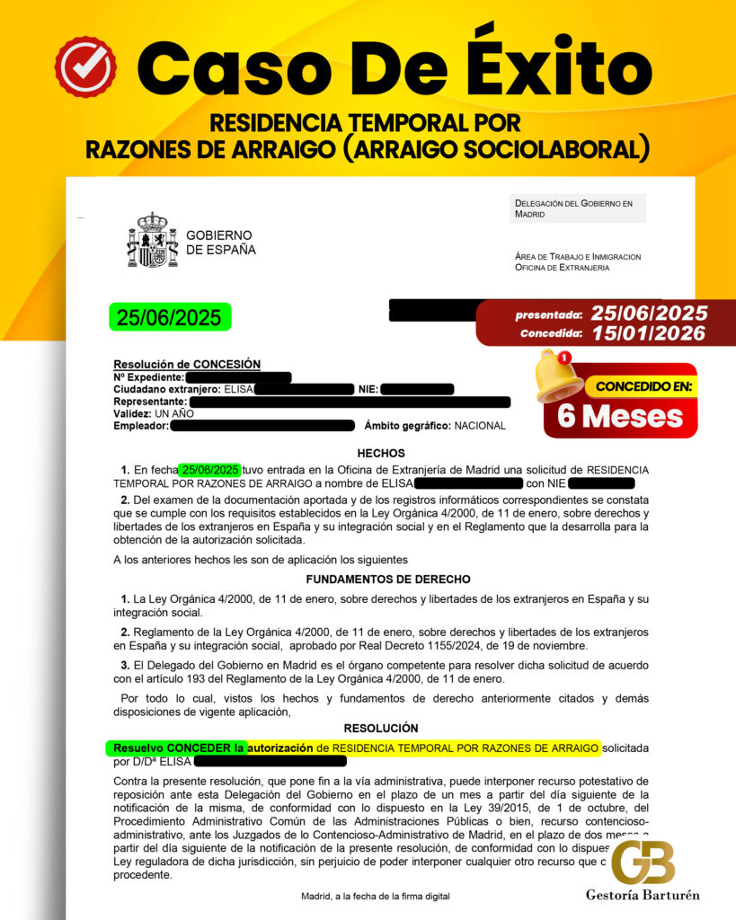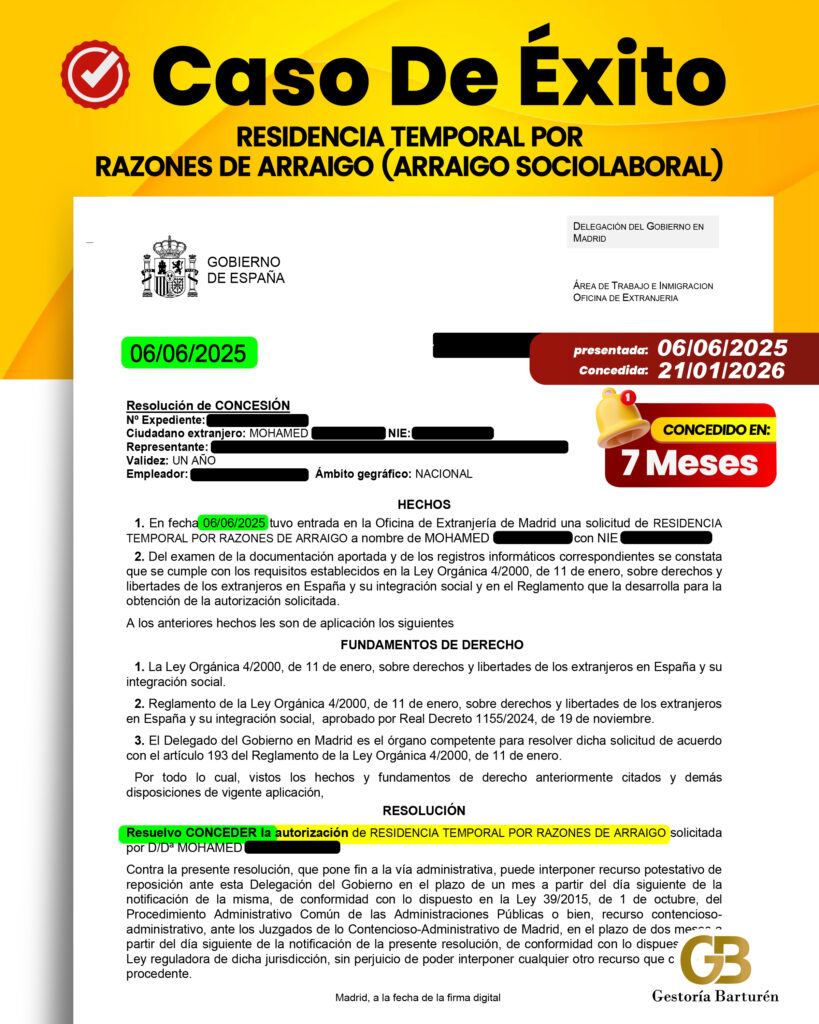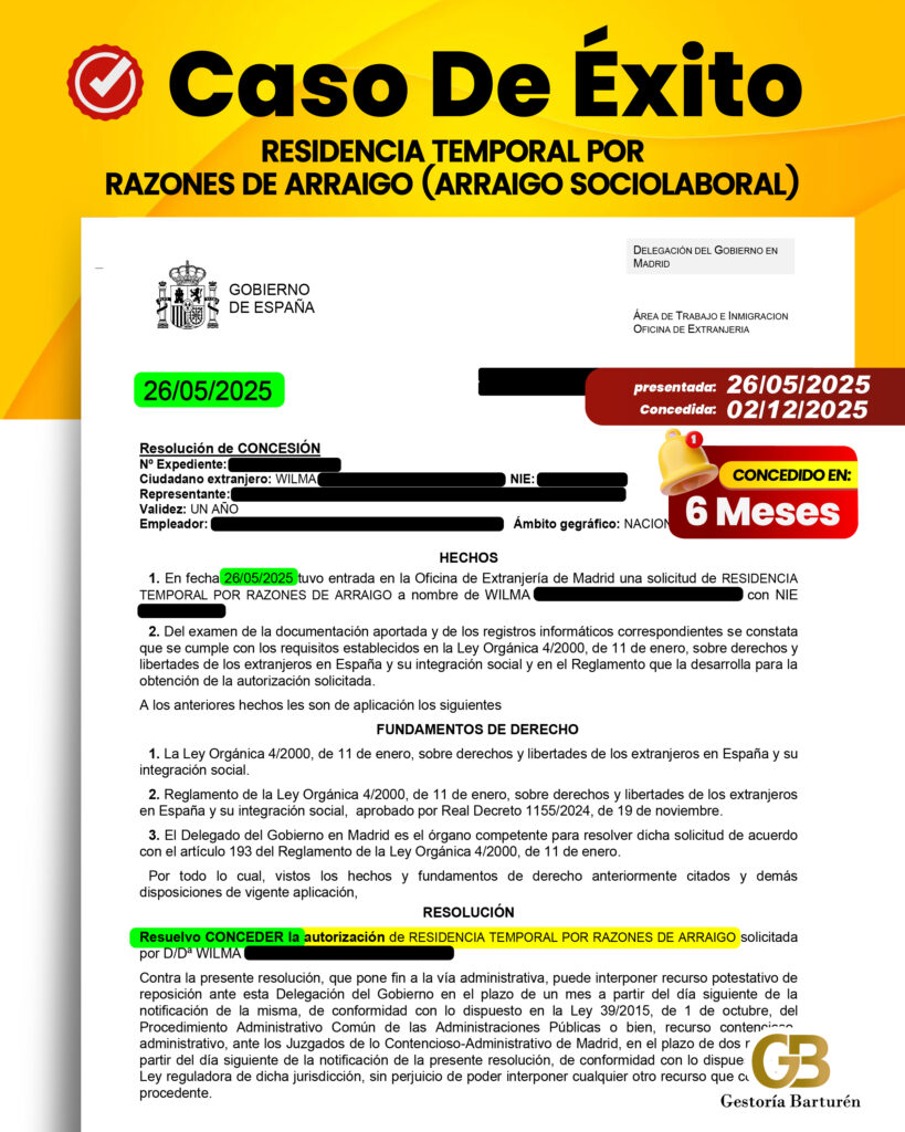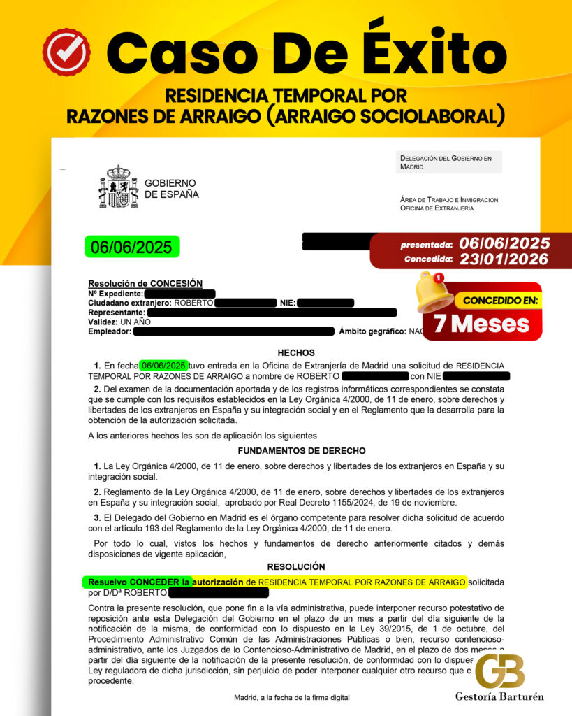 RESIDENCIA TEMPORAL POR RAZONES DE ARRAIGO (ARRAIGO SOCIOLABORAL)