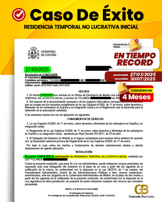 Caso de Éxito de YOLANDA en 4 Meses. RESIDENCIA TEMPORAL NO LUCRATIVA INICIAL